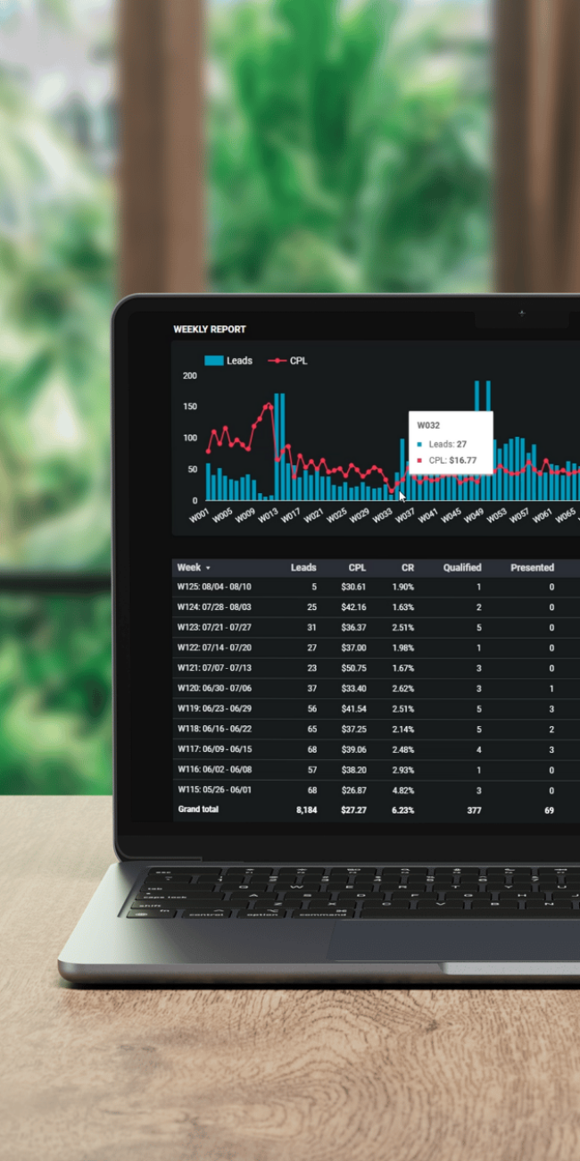 We plan, build, and optimize full-funnel ad campaigns across Meta and Google — designed to reach high-intent buyers and drive measurable lead volume.